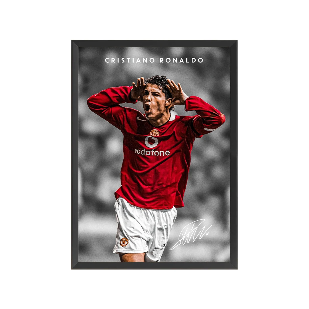 تابلو کریستیانو رونالدو، ستاره افسانهای فوتبال، نماد یکی از درخشانترین فصل های ورزشی او در تیم منچستر یونایتد است. این اثر هنری با طراحی خلاقانه و کیفیت فوقالعاده، تصاویری از لحظات هیجانانگیز بازیهای رونالدو در منچستر یونایتد را به زیبایی به نمایش میگذارد.